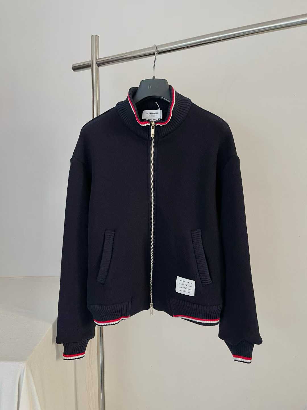 톰브라운 2026 루프백 네임택 니트 집업 자켓